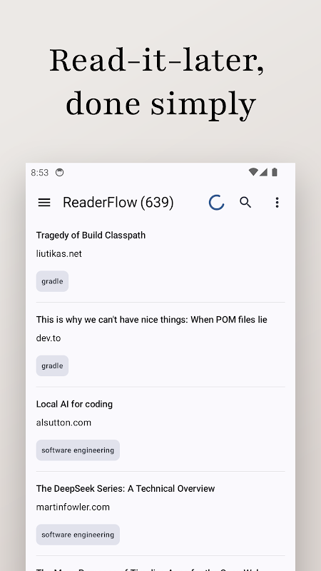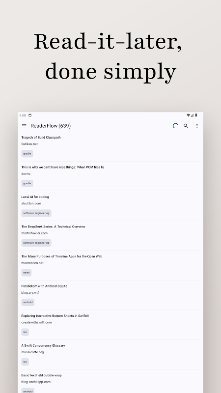 ReaderFlow هو تطبيق بسيط يُركز على الخصوصية، يُتيح لك حفظ المقالات لقراءتها لاحقًا دون اتصال بالإنترنت.