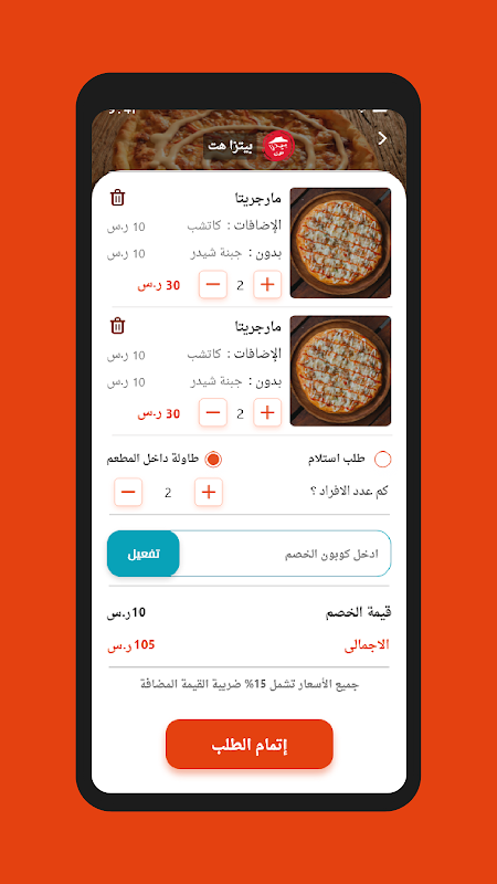 اطلب من تطبيق ريدي اوردر دون الوقوف في طوابير، استلم طلبك او احجز طاولة في المطعم مع عدد الافراد اللي يأتون معك.