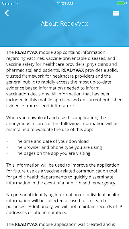 ReadyVax يحتوي على معلومات ما يصل إلى التاريخ حول اللقاحات والتطعيم.