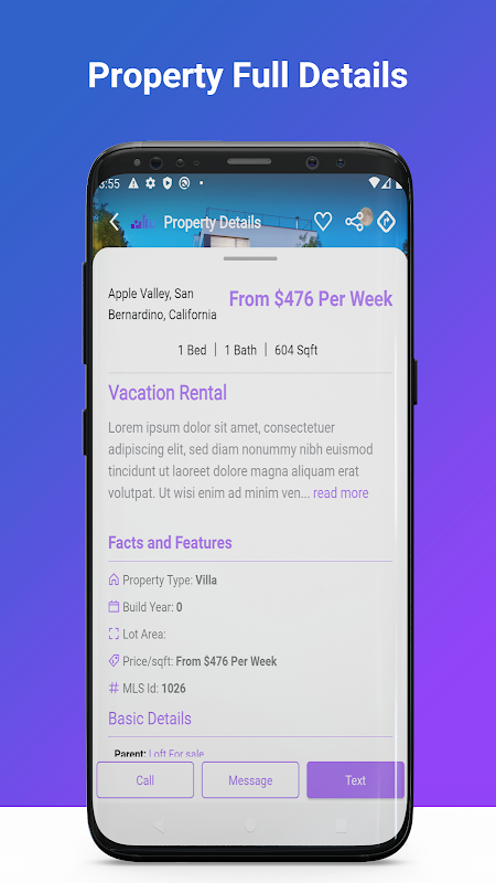 - مشاركة الممتلكات على الرسائل القصيرة ، فايبر ، واتس اب ، إلخ ...