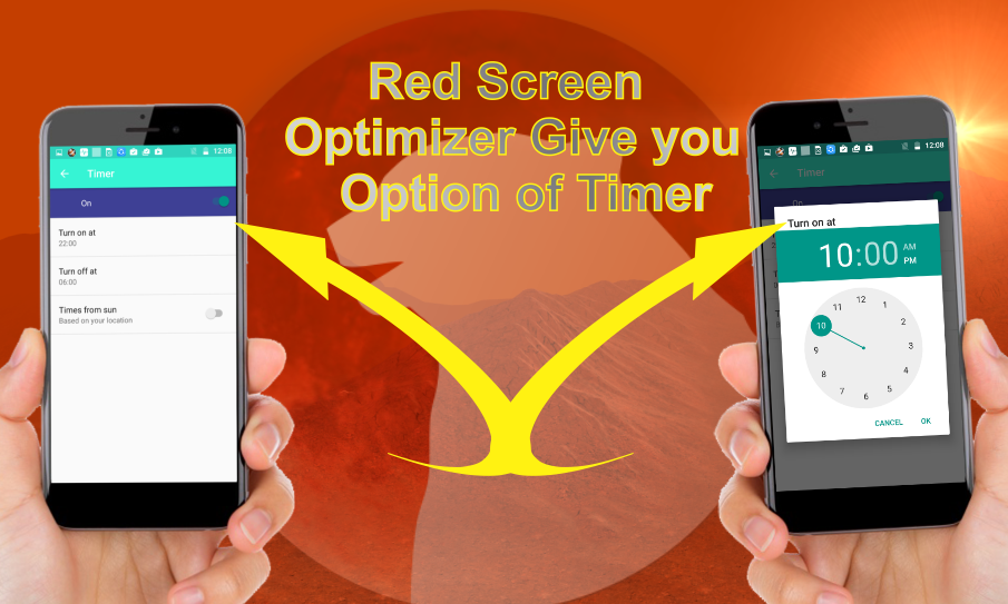 أحمر محسن الشاشة لديه الموقت الذي يمكنك اختيار الفترة الزمنية التي التطبيق يجب أن تبدأ وإيقاف. يمكنك أيضا استخدام الخيار (وقت الشمس) الذي سيتم تشغيله تلقائيا عندما يحصل على الشمس أسفل وإيقاف في الصباح باستخدام الوقت من موقعك.