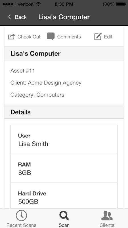 لدينا التطبيق يسمح لك لعرض الأصول الخاصة بك من أي مكان كنت. يمكنك تعديل تفاصيل الأصول، وجعل أصول جديدة، وتحقق من أصولك داخل وخارج.