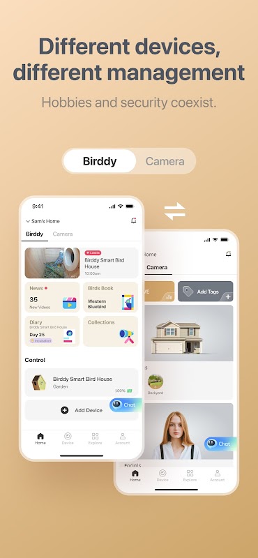 عرض كافة الفيديوهات المسجلة مما يتيح لك الاطلاع على آخر أحوال الطيور. استخدم تقنية التعرف على الذكاء الاصطناعي لتحديد الطيور التي تهتم بها أو التي لا تعرفها؛ سيزودك هذا بمعلومات حول نمط حياة الطائر ونظامه الغذائي والمزيد.