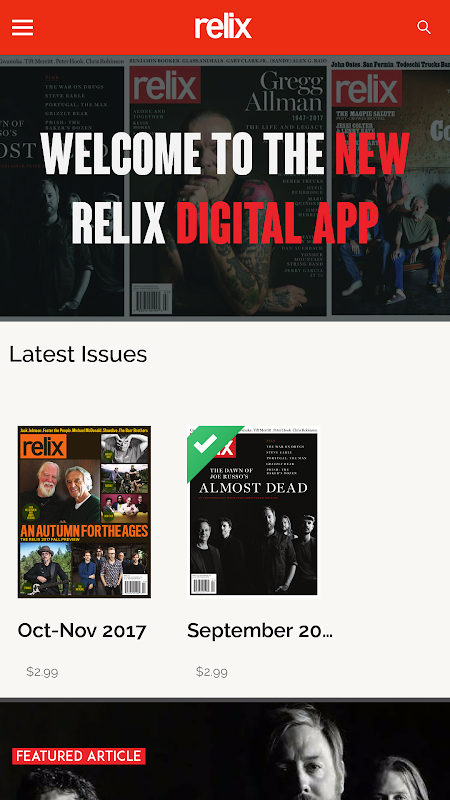 لدينا الجديدة وتحسين التطبيقات الرقمية يتميز الأعداد السابقة للشراء الفردية فضلا عن القضايا المستقبلية المتاحة من خلال الاشتراك 1 سنة. تتضمن كل قضية جديدة PDF الرقمي الكامل للماج واثنين المنسقة التابعة العينات الفنان جديدة. تتوفر في المكتبة Relix بك ACCESS دون اتصال كاملة لملفات PDF وملفات MP3.