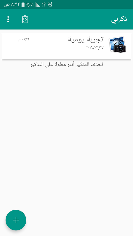 هو برنامج مخصص للتنبيه يتيح لك امكانية إلتقاط الصورة للتذكير بشيء معين و كما يتيح لك أيضاً كتابة عنوان للتذكير ان لم يكن لديك صورة و يتميز بإمكانية التكرار لأي تكرار سواء يومياً أو أسبوعيا أو حتى شهرياً