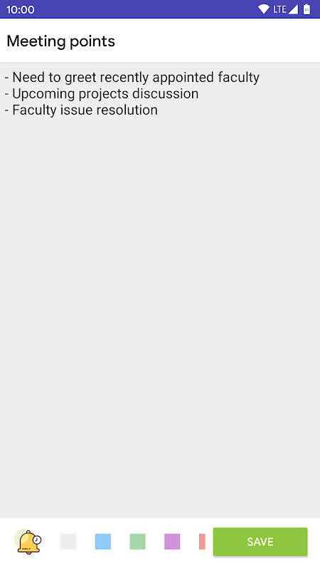لا يستخدم التطبيق لإنشاء ملاحظات فحسب ، بل يساعدك أيضًا في الحصول على إشعار تذكير بملاحظات محددة في وقت محدد. يمكنك أيضًا تمييز الملاحظات عن طريق تعيين ألوانك المفضلة لهم.