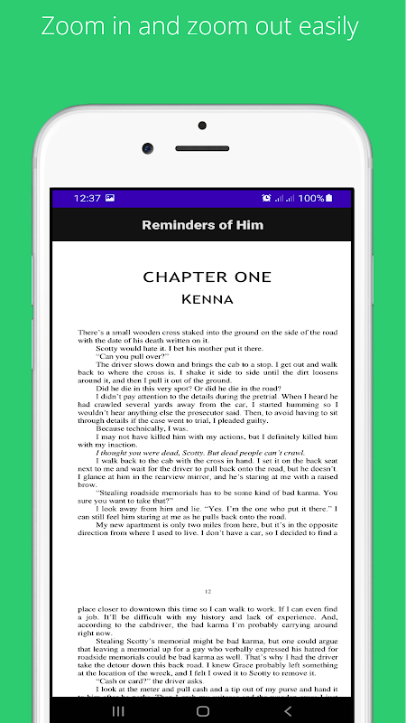 في قصة الحب Reminders of Him من تأليف كولين هوفر ، كان لدى كينا روان أمل ضئيل عندما تم إطلاق سراحها من السجن بعد أن قضت خمس سنوات بتهمة القتل غير العمد. لقد استنفدت كل الأموال التي كانت قد ادخرتها تقريبًا للعودة إلى المدينة حيث التقت بسكوتي لاندري ، حبها الأول. المدينة أيضًا حيث توفي سكوتي في حادث سيارة مأساوي بينما كان كينا يقود سيارته. تأمل كينا في لم شملها مع ابنتها التي أجبرت على التخلي عنها أثناء وجودها في السجن. ومع ذلك ، سرعان ما تكتشف أن العالم يحكم عليها بخطأ فادح.
