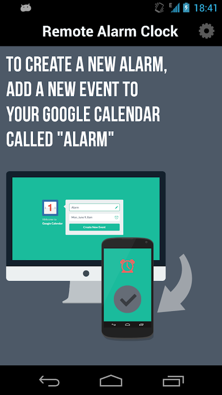 2. Create a new calendar entry called "Alarm", beginning at the time you want the alarm to go off