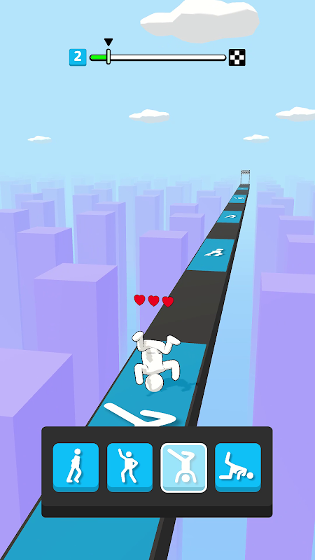 Tap on the correct dance move as it appears on the path!