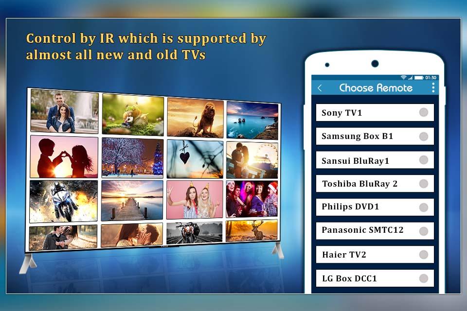 Remote Control For All TV is a prank application, just for fun and it does not work in real.