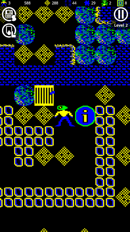 Repton 2 هي لعبة ألغاز كلاسيكية تتكون من الماس والصخور والبيض والناقلات