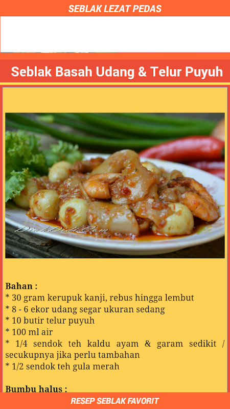 Aplikasi panduan cara memasak seblak yang enak dan pedas, dilengkapi dengan resep seblak terfavorite dan terbanyak dicari pada tahun 2019.