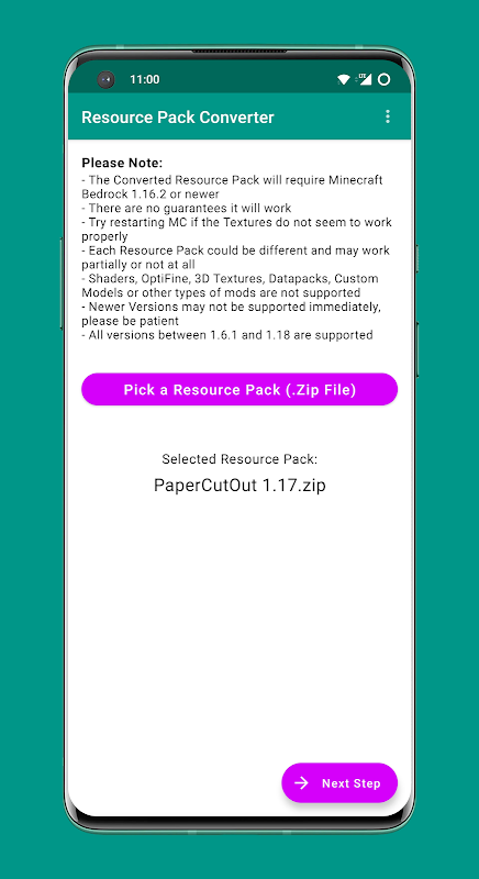 All you need to do is to pick the Zip File containing the Resource Pack, change its name or description if you wish and then just hit "Convert". The app will automatically proceed to create a playable Resource Pack for Bedrock Edition!