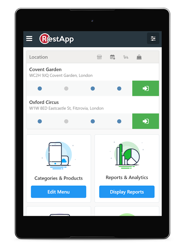 Manage your business with RestApp's intuitive and easy to use Back Office application.