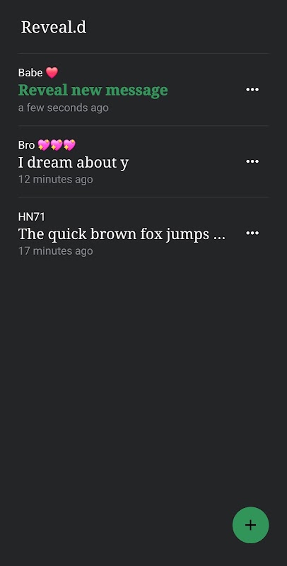 مرحبًا بك في Reveal.d، وهو نوع خاص من تطبيقات المراسلة التي لا تحتوي على زر إرسال. سيرى أصدقاؤك رسائلك أثناء كتابتها فقط، مما يضفي شفافية التواصل اللفظي على الرسائل النصية.