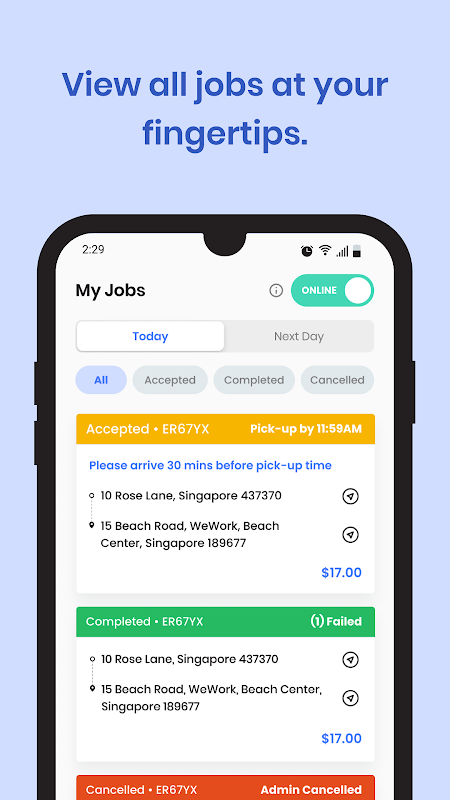 - هل تريد كسب عمولات أعلى؟ يفحص. تعمل تقنية الذكاء الاصطناعي القوية الخاصة بنا على تجميع الوظائف بطريقة تؤدي إلى زيادة أرباح السائقين وتوفير أعلى للتجار. لا شيء يضاهي إبقاء الجانبين سعداء ، أليس كذلك؟