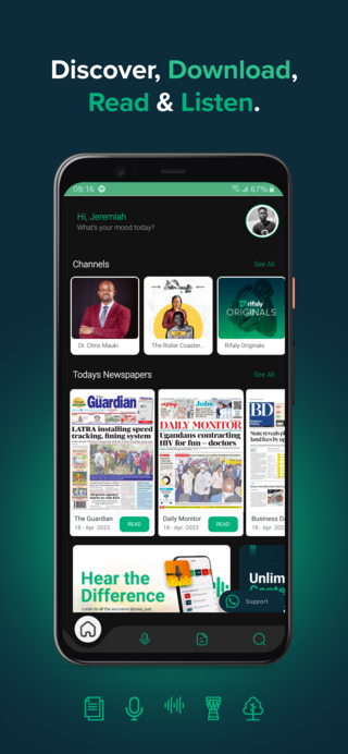 يمنحك Rifaly وصولاً غير محدود إلى آلاف الصحف والمجلات والكتب الإلكترونية والقصص من جميع أنحاء إفريقيا حتى تتمكن من البقاء على اتصال بالأخبار والكتب والقصص التي تحبها.