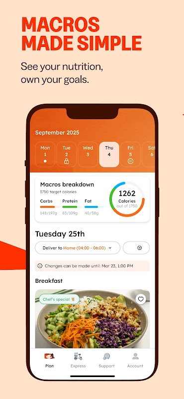 استمتع بمرونة مدة الوجبة والطرود والتسليم. قم بإيقاف خطة وجباتك مؤقتًا أو تبديلها في أي وقت، وقم بإجراء تغييرات حتى 20 ساعة قبل التسليم أو قم بإلغاء الوجبات للحصول على أرصدة.