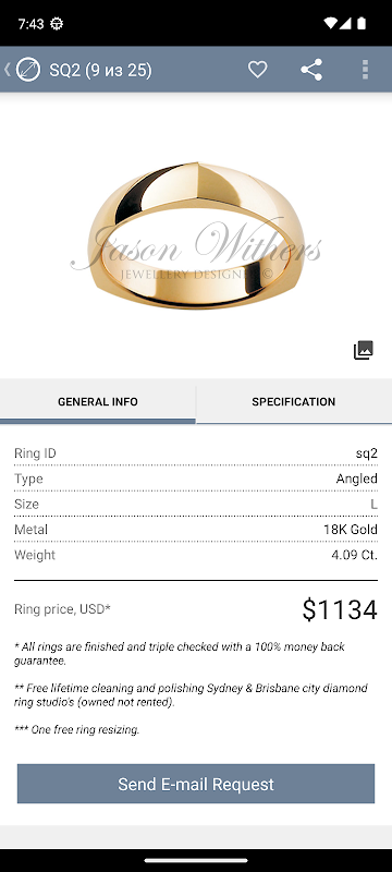 أيضا لدينا المتكاملة لدينا "خطوبة والزفاف الخواتم" النشرة المصورة من جاسون ويترز في هذا التطبيق. يمكنك طلب الأسعار من خلال وظيفة "الاستفسار عن طريق البريد الإلكتروني" من التطبيق. وسيكون أحد الخبراء الاستشاريين المجوهرات لدينا بعد ذلك الاستجابة للتحقيق، ومساعدتك في طلبك.