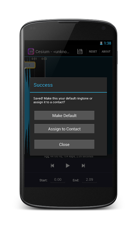 Cut the best part of your audio song and save it as your Ringtone/Alarm/Music File/Notification Tone.