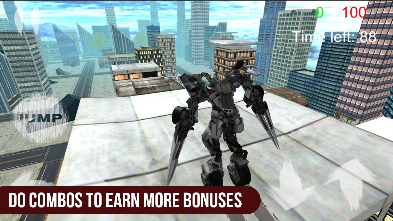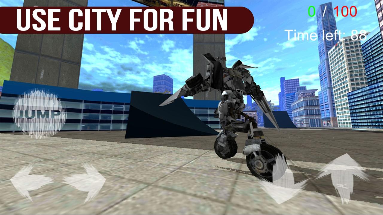 In the simulator you will find beautiful 3D graphics, so you can fully enjoy the breathtaking views of the vast city of X Ray and tech buildings. Experience the real effect of the flight and the beauty of a futuristic robot! Thanks to the good physics you will be able to think through your movements, up stunning tricks and even destroy other hoverboard of carobot. Energetic music of the simulator add the fun to competition and you will never get bored during breaks.