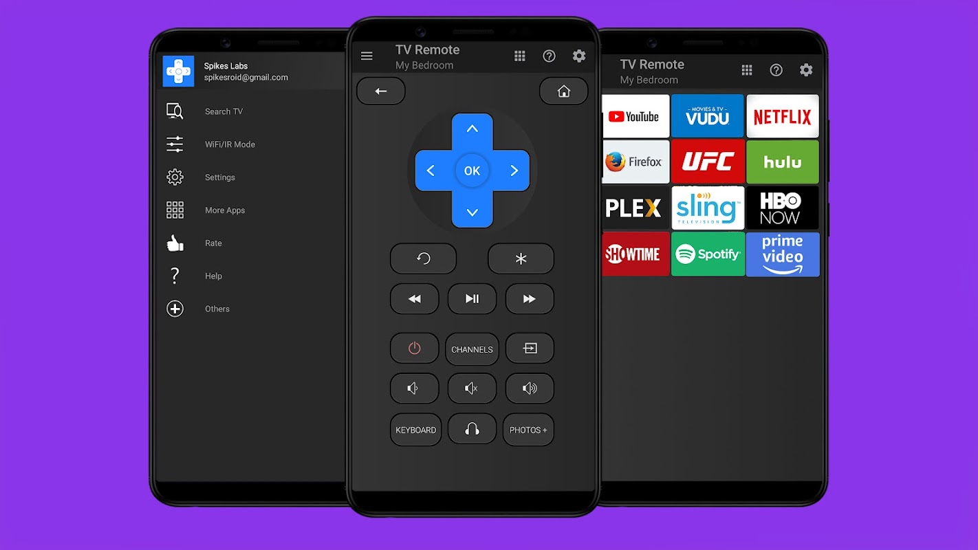 RoSpikes تطبيق مجاني وبسيط للتحكم في أجهزة البث التلفزيوني الشهيرة وأجهزة التلفزيون الذكية، مثل هاير / هايسنس / فيليبس / شارب / تي سي إل / إليمنت / إنسيجنيا / هيتاشي وأجهزة تلفزيون RCA.