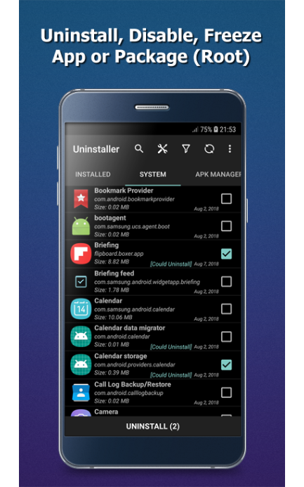 ☆ Root Uninstaller (System App Uninstaller) is the fastest and simplest tool, help you can uninstall/remove unwanted application or package (Installed, Bloatware & System)