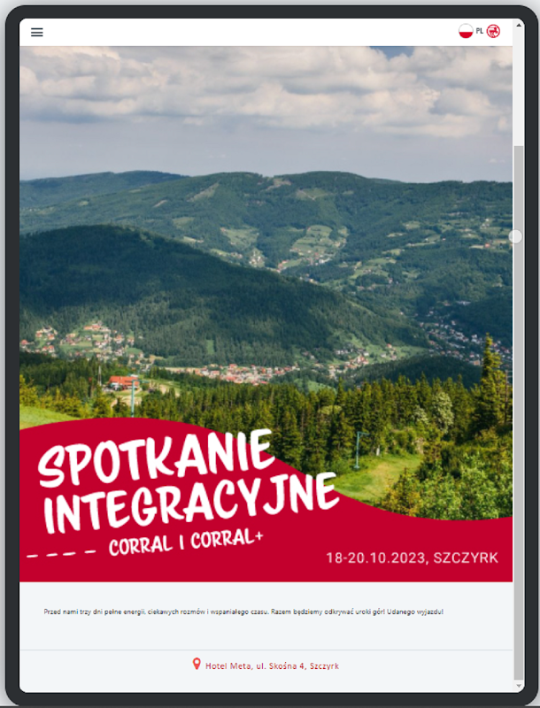 ينقسم المحتوى إلى أقسام متاحة من قائمة التطبيق: الصفحة الرئيسية، جدول الأعمال، الجدول الزمني، جهة الاتصال، عوامل الجذب الإضافية، الفنادق، بحث الجدول.