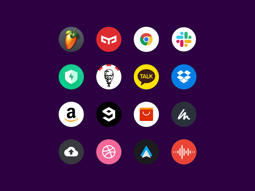اختيار ورق الحائط لتتماشى مع حزمة الرموز. يمكنك تعيين تصميمات مخصصة لتطبيقات معينة باستخدام قاذفات مثل "Nova launcher" وغيرها من مشغلات android المتوافقة.