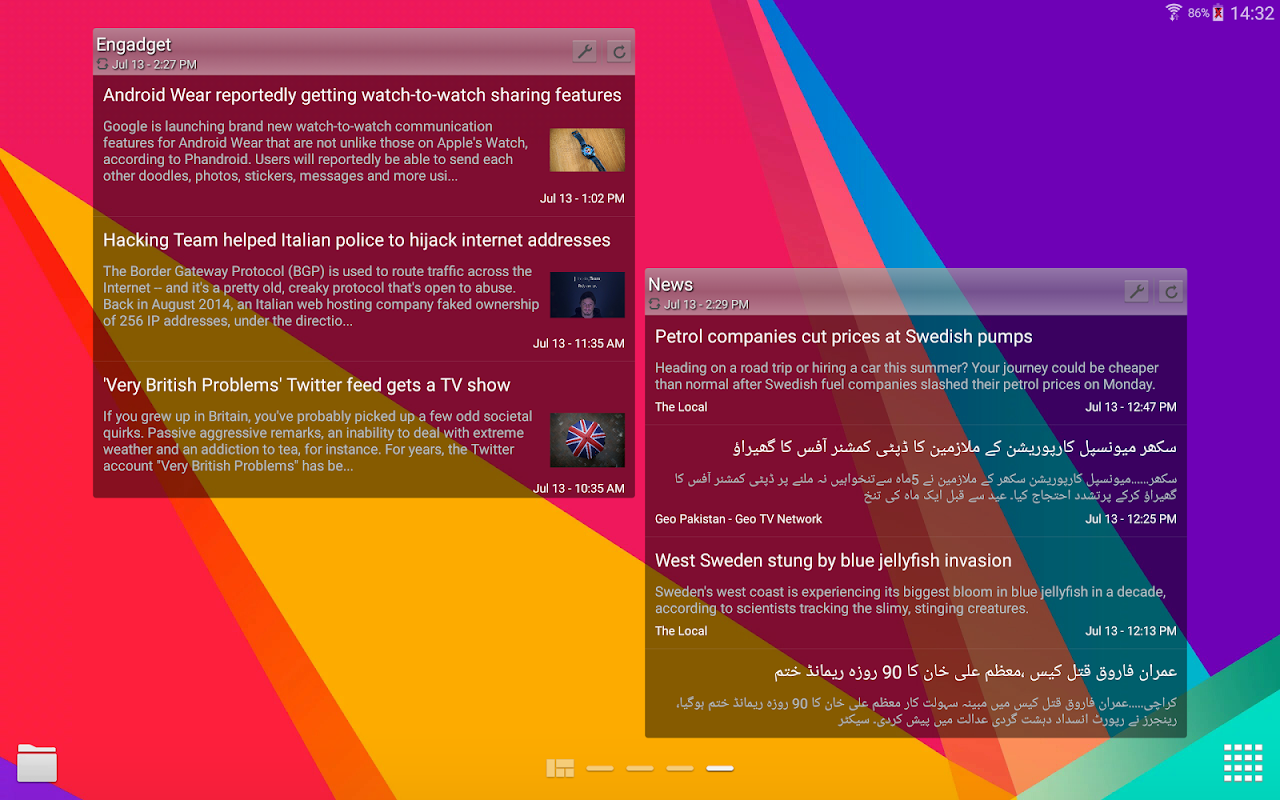 والقطعة بسيطة جدا ونظيفة وسهلة الاستخدام لتقديم RSS يتغذى على منزلك و / أو شاشة القفل. وهو يفعل ما يعني أن تفعل، مع الاخذ في جزء ضئيل من ذاكرة هاتفك.