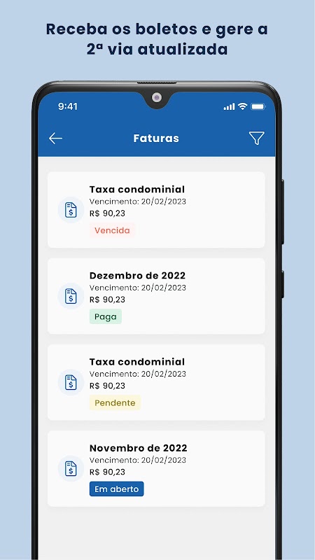 • الفواتير: احصل على رسوم الشقة من خلال التطبيق وبنقرة واحدة، انسخ الرمز الشريطي للدفع في الخدمات المصرفية عبر الإنترنت. هل فزت؟ لا توجد مشكلة: أنشئ النسخة الثانية وادفع على الفور! لا مزيد من الفواتير عند الباب أو ساعات على الهاتف لإنشاء نسخة ثانية.