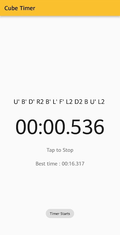 The design is basic and you can start and stop the timer with simple tap. Scramble is shown above the timer initially and resets after you stop the timer everytime.