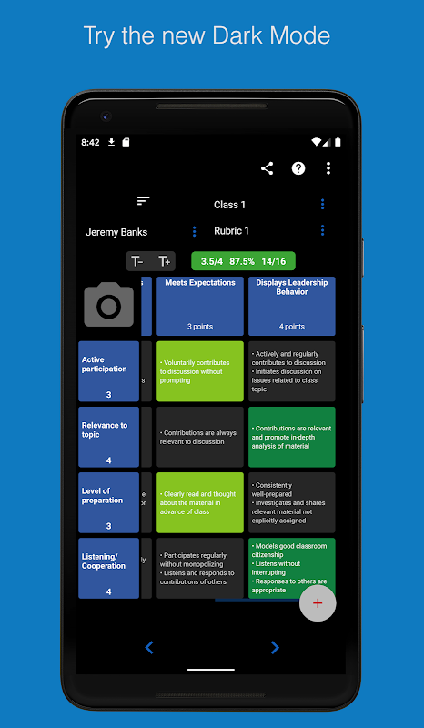 يدعم التطبيق المجاني ما يصل إلى 3 نماذج تقييم لفصل واحد.