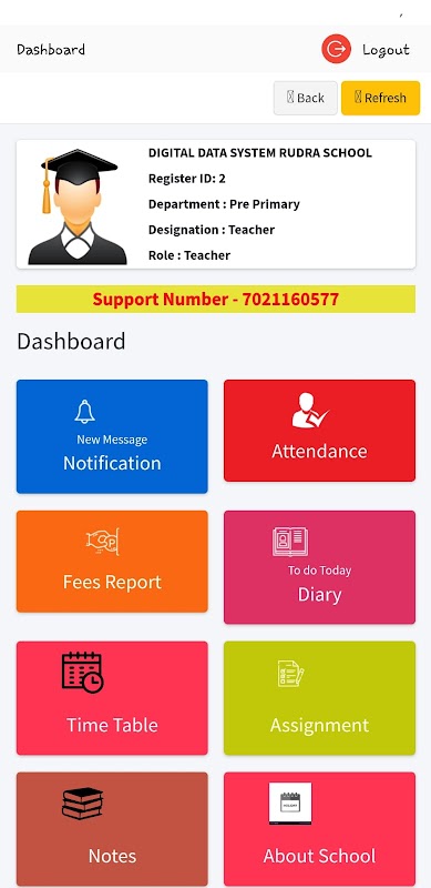 تطبيق جوال لإدارة المعهد بالكامل مع القبول عبر الإنترنت ، ودفع الرسوم ، والحضور ، والإخطار ، والعمل في المنزل ، والجدول الزمني ، والنتيجة