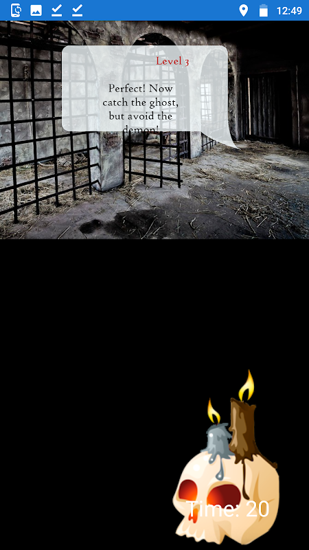 In the game, there are one ghost and one demon. You need to catch a ghost, not a demon. If you touch the demon, you will be a loser. If you catch the ghost, you will be in the next level, but remember that every level is hard and the ghost will be less visible.