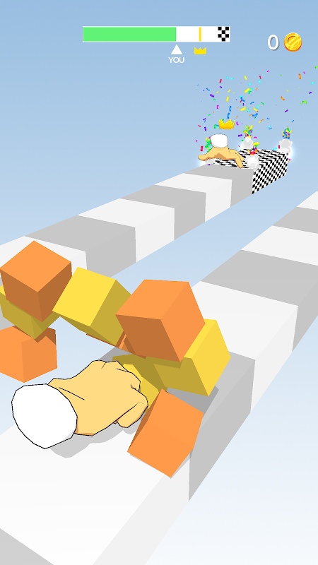 Run with the crazy fingers, push walls, take ropes and avoid obstacles to win the race!