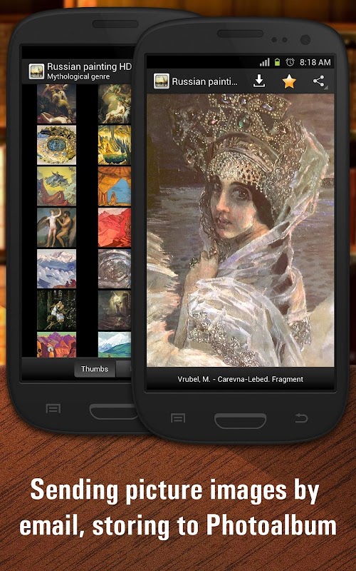 يحتوي التطبيق على 1500 عمل من 250 من أعظم الرسامين الروس - Aivazovsky ، Shishkin ، Savrasov ، Repin ، Levitan ، Vrubel ، Roerich ، Surikov ، Vasiliev والرسامين المشهورين الآخرين.