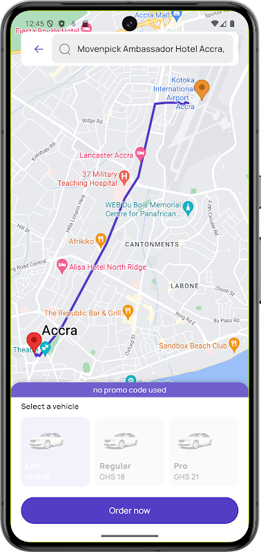 سريع وموثوق: اطلب رحلة ببضع نقرات فقط وسيقلك سائق قريب منك في دقائق.