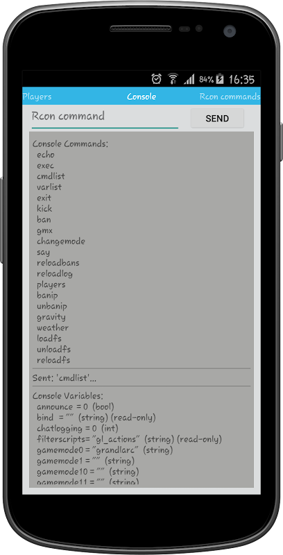 You can control your San Andreas - Multi Player servers with there Admin (Rcon) Tools from your Android Phone.