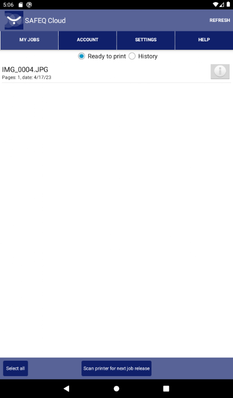 يعمل هذا التطبيق جنبًا إلى جنب مع خادم SAFEQ Cloud للحصول على طباعة آمنة مصادقة من أجهزة Android المحمولة إلى خادم طباعة SAFEQ Cloud وعملاء طباعة المحاسبة / إدارة الطباعة الأساسية.