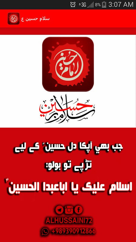 یہ ایپلیکیشن ایک ویجیٹ ہے جو ہر بار اپکے موبائل اسکرین کے آن ہونے پر امام حسین علیہ السلام پر سلام بھیجے گا، اس طرح آپ امام حسین علیہ السلام پر زیاده سے زیادہ سلام بھیج سکتے ہیں.