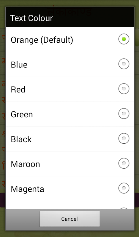 يمكنك تغيير لون نص صفحة القراءة حسب متطلباتك. اذهبوا إلى قائمة خيارات واختر "تغيير لون النص". يمكنك تحديد ألوان النص من قائمة الألوان المتاحة. ما عليك سوى اختيار واضغط على حفظ. سوف يتغير لون قراءة النص حسب اختيارك. (يسري فقط على شاشة التفاصيل).