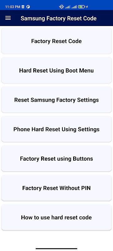 • Samsung Factory Reset Code تصوير الشاشة 4