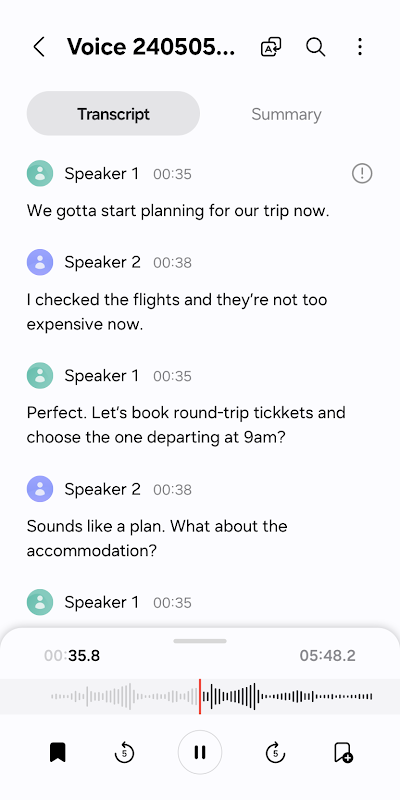 [مقابلة] سجّل صوتك وصوت شخص آخر باستخدام الميكروفونات الموجودة أعلى وأسفل هاتفك. يعرض شكل موجة الصوت لكل صوت، ويمكنك تشغيله بشكل منفصل.