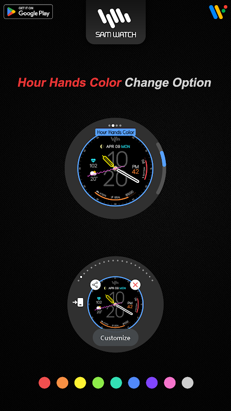 * تطبيقات الهاتف الذكي هي تطبيقات إضافية تدعم تنزيل التطبيقات على أجهزة Watchface. قد يكون مختلفًا عن لقطة شاشة watchface لتطبيق الهاتف الذكي ولقطة شاشة watchface التي تم تنزيلها بالفعل. تشتمل معظم منتجات تطبيق Watchface من SamWatch على تطبيقات للهواتف الذكية.