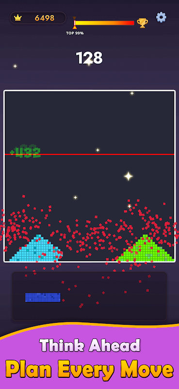 أكمل خطًا أفقيًا بالرمال من نفس اللون لإزالته، واستخدم استراتيجية ذكية لإدارة المساحة المحدودة والتخطيط لخطوتك التالية.