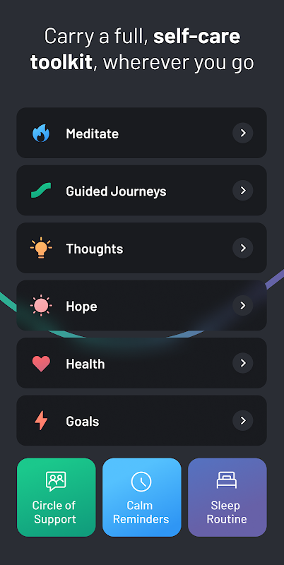 سواء كنت تشعر بالقلق أو الوحدة أو الإرهاق أو الإرهاق ، فإن Sanvello ستقابلك أينما كنت. فكر في الأمر على أنه مجموعة أدوات لتحسين شعورك ، بما في ذلك تقنيات المواجهة ، والتأملات ، وتتبع الهدف والمزاج ، المصمم من قبل الخبراء لمساعدتك على الشعور بالتحسن.