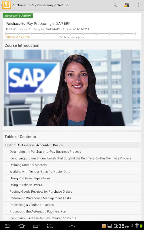With the SAP Learn Now mobile app for Android tablets, you can take selected SAP Education classes and build your SAP knowledge base anywhere and anytime. This app allows SAP learners to download SAP classes to their Android tablet and study them whenever they please, without the need of an Internet connection.