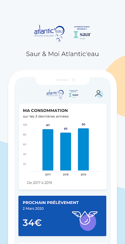 من مراقبة استهلاكك إلى إدارة فواتيرك، تقدم لك Saur & Moi atlantic'eau خدمات مبتكرة وشخصية لدعمك على أساس يومي. يتيح لك تطبيق Saur & Moi atlantic'eau، الذي يمكن الوصول إليه على مدار 24 ساعة طوال أيام الأسبوع، وهو آمن وبسيط وقابل للتطوير، تنفيذ العديد من الإجراءات عبر الإنترنت أينما ومتى تريد.