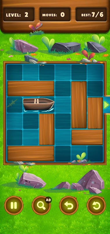 "أنقذ القارب: لغز الانزلاق" لعبة ألغاز آسرة ومشوقة، مصممة لاختبار مهاراتك في التفكير الاستراتيجي وحل المشكلات. في لعبة ألغاز الكتل المنزلقة هذه، هدفك هو تحريك القارب عبر شبكة مزدحمة 6×6 مليئة بالكتل الخشبية المتنوعة.